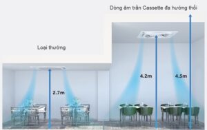 Với những không gian có trần cao thì việc lựa chọn máy lạnh sao cho phù hợp là một vấn đề khó khăn. Và máy lạnh âm trần AQUA Inverter 4 HP AB105S2LR1FA là một giải pháp tối ưu trong trường hợp này. Nhờ có luồng gió mạnh mẽ máy lạnh có thể được lắp đặt ở độ cao 4,5m và vẫn đảm bảo khả năng làm mát khắp phòng.